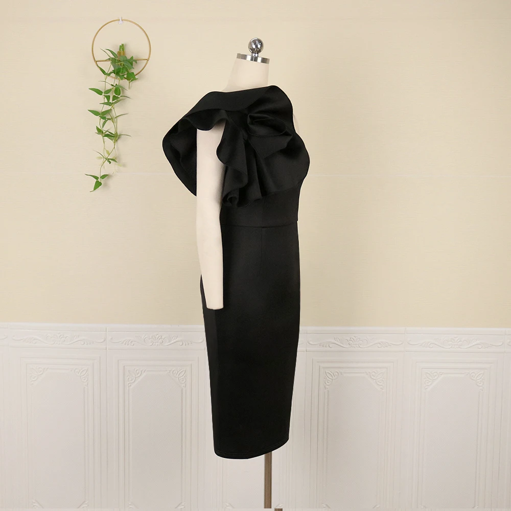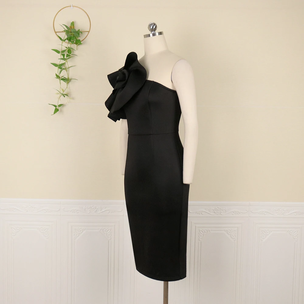Africa Women Party Dresses One Shoulder Sleeveless Big Flower Solid Bodycon Slim Fit Dress Vintage Elegant Ladies Fall Fashion _iimport AomeidressS/hoodmat.com
