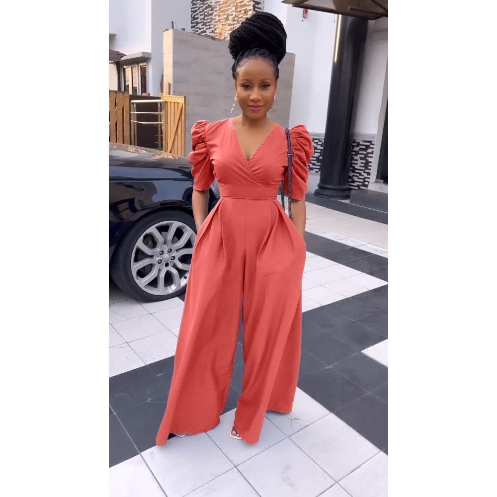 Product Code: Spring Summer Fashion Jumpsuit Womens Solid Color V-neck Bubble