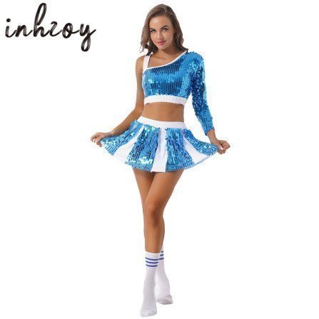 Womens School Musical Party Cheerleader Costume Fancy Dress Uniform Outfit Shiny Sequin Gleeing Clothes with Socks _iimport inhzoy/hoodmat.com_RiteVilage