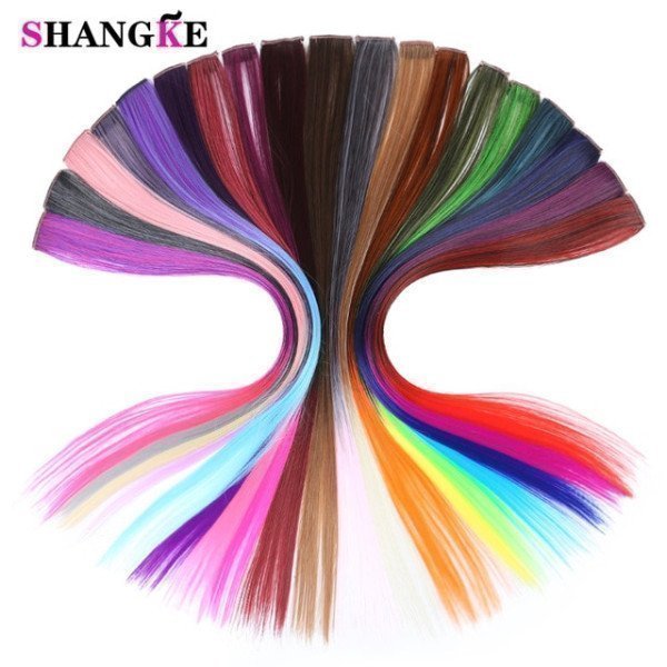 Single Clip In One Piece Hair Extensions Synthetic Long Straight Made 70 Colors Ombre Red Hair Pieces Shangke/hoodmat.com