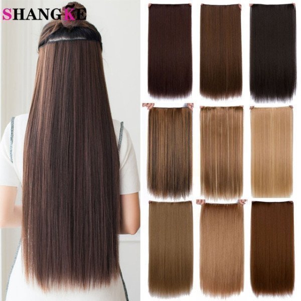 Hair 24 Long Straight Women Clip In Hair Extensions Black Brown High Tempreture Synthetic Hair Piece Shangke/hoodmat.com